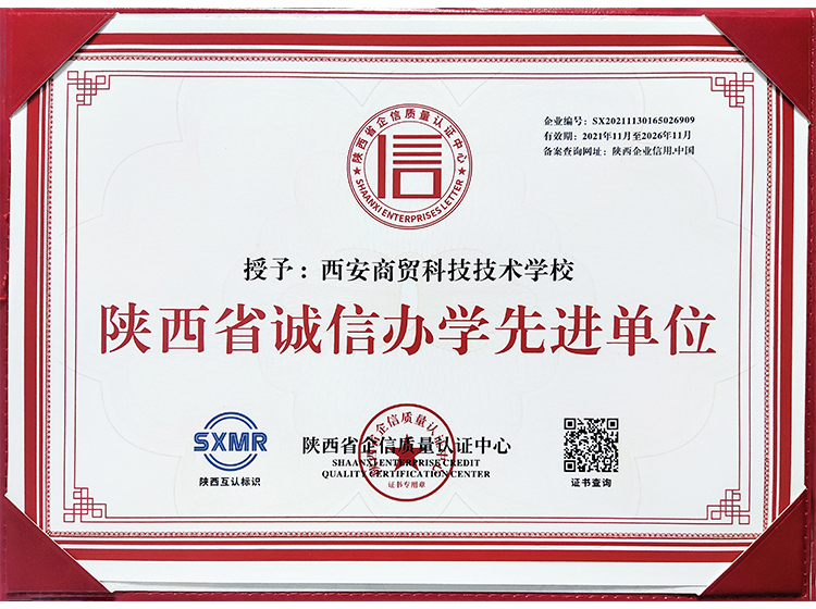 西安商貿科技技術學校成立于2004年,是一所隸屬于陜西省人力資源和社會保障廳的全日制省屬院校。學校坐落于西安市未央區,毗鄰國家AAAA級漢城湖景區,交通便利,環境優美,設施完善,占地面積180余畝,綠化率達45%,三季有花、四季常青,被譽為“園林式校園”。秉承“厚德強技,知行合一”的校訓,堅持內涵式發展,注重養成教育,培養德、智、體、美、勞全面發展的高素質現代化技能人才。